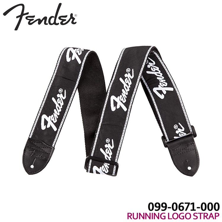 Fender ギターストラップ RUNNING LOGO STRAP 0990671000 Black with White Logo フェンダー