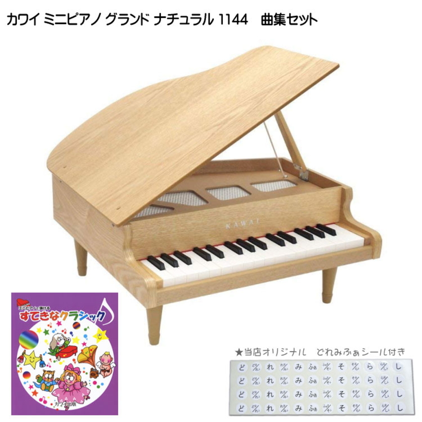 KAWAI ミニグランドピアノ・ナチュラル1144/ミニピアノ専用曲集「すてきなクラシック」/どれみふぁシール