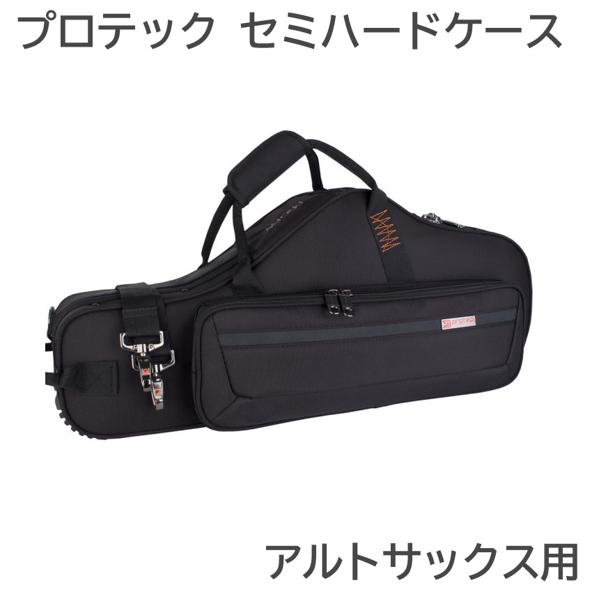 本商品はアルトサックス用のセミハードケースです。 耐久性の高いケースが、しっかりと楽器を保護してくれます。 掴みやすい持ち手に加えて、ショルダーストラップが付属しておりますので、肩にかけて持ち運ぶことも可能です。 ケース正面のポケットには、メトロノームやチューナー、リードケース、クロス、筆記用具などの小物を収納することができ、大変便利です。 ■288-PB304CT(ブラック) ・管楽器ケース ・アルトサックス用 |