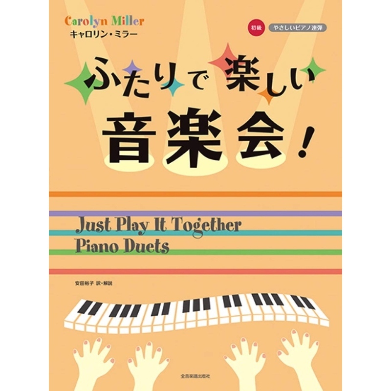 5指ポジションで弾ける導入〜初級レベルのやさしい連弾曲集。生徒と生徒、先生と生徒で弾ける、やさしく楽しいレッスン・発表会向きの曲集です。手をたたいたり、ひざをたたいたり、小さな生徒さん同士でも楽しく連弾しながらアンサンブル能力を養います