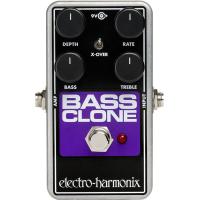 エレクトロハーモニックスのベースコーラス「BASS CLONE」です。 Bass Cloneは伝説のElectro-Harmonix Small Cloneの回路を踏襲しながらもベーシストのニーズに応える機能として、より広いレンジで調整ができるモジュレーションDepthコントロール、音作りの幅を広げるBass, Trebleコントロール、低域にかかるモジュレーションの量を減らすcrossoverスイッチを搭載しました。Bass Cloneは、すでにベーシストに人気のペダルに、ベースに特化した仕様変更を加えた完璧なベース専用コーラスペダルです。 バイパス時に「INPUT」から「OUTPUT」までダイレクトに繋がる「True Bypass(トゥルーバイパス)」仕様です。 -コントロール- DEPTH:モジュレーションの量をコントロールします。 RATE :モジュレーションのスピードをコントロールします。 BASS:ドライシグナルの低域をカット/ブーストをします。 TREBLE :ドライシグナルとモジュレーションシグナル両方の高域をカット/ブーストをします。 X-OVER SWITCH:上方向にスイッチを切り替えるとモジュレーションシグナルの低域をカットします。 | ||||||||||||||