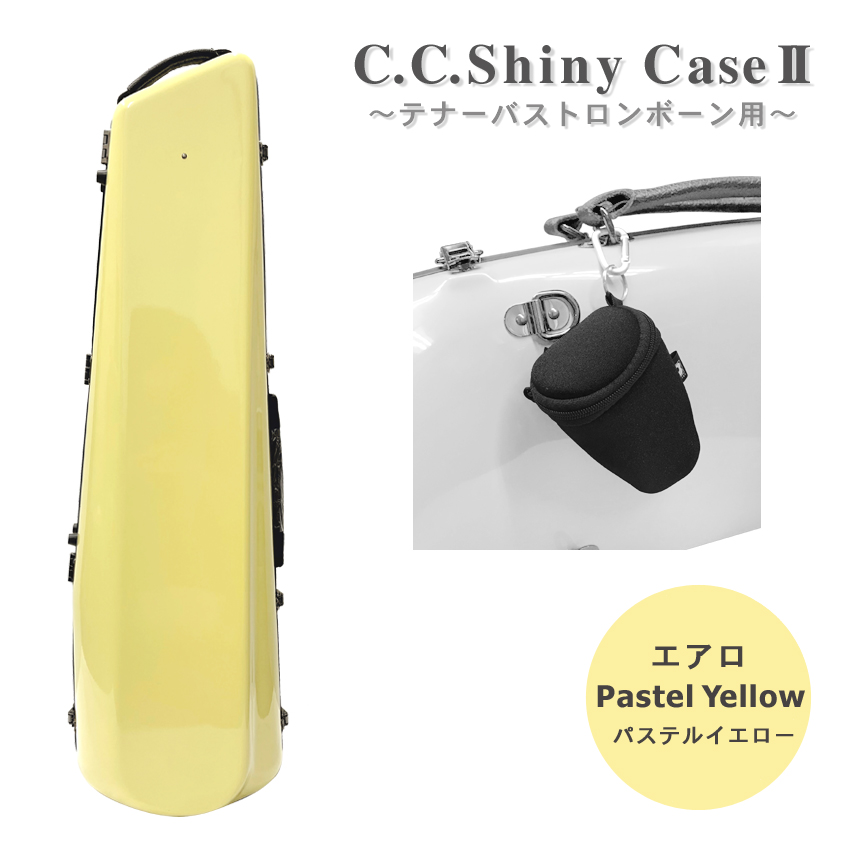 C.C.シャイニーケースII トロンボーン エアロタイプ テナー テナーバス用 パステルイエロー 黄色 ハード フック付きマウスピースポーチセット 軽量