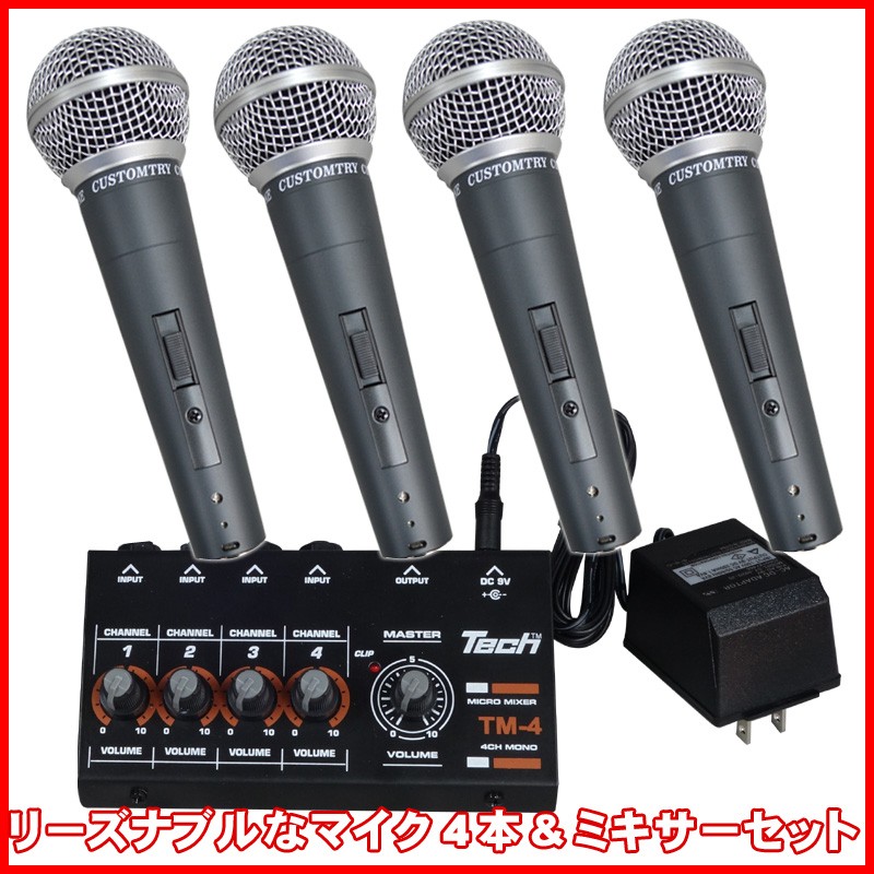 KC ダイナミックマイク4本 & 4CHマイクロミキサー マイクの追加に最適