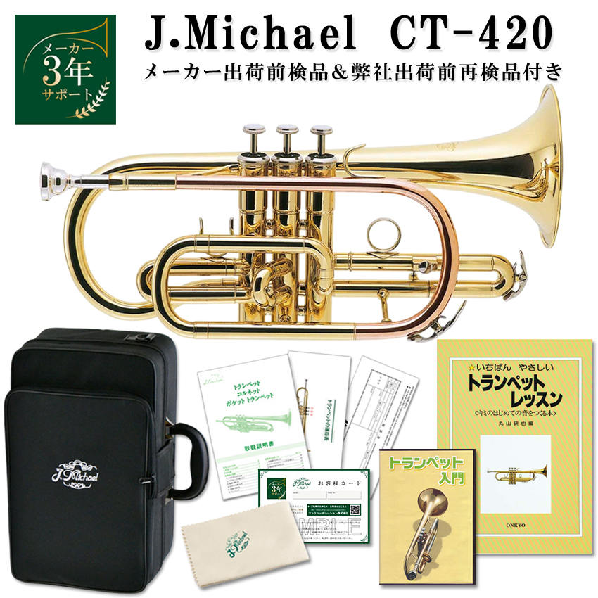 3年保証付き コルネット 初心者 セット 独学しやすい教則本とDVD付き J.Michael CT-420 B♭ クリアラッカー 2回検品後発送 趣味 吹奏楽 ブラスバンド 練習 入門