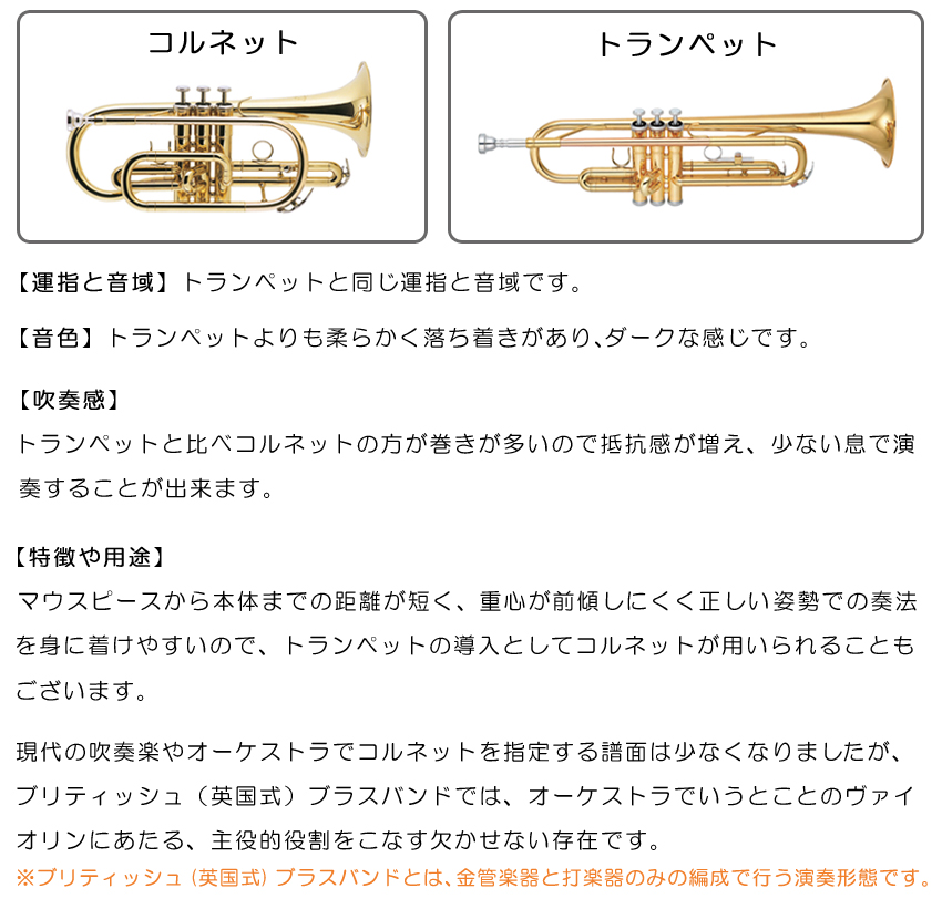 ■トランペットとコルネットの違い
