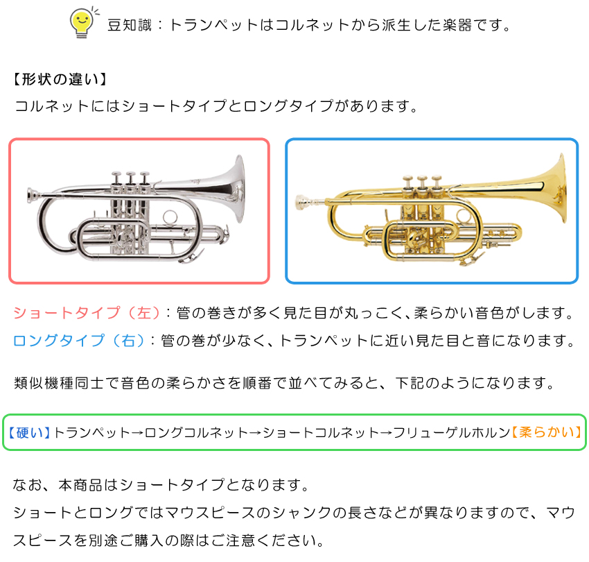 柔らかな音色のショートタイプコルネット