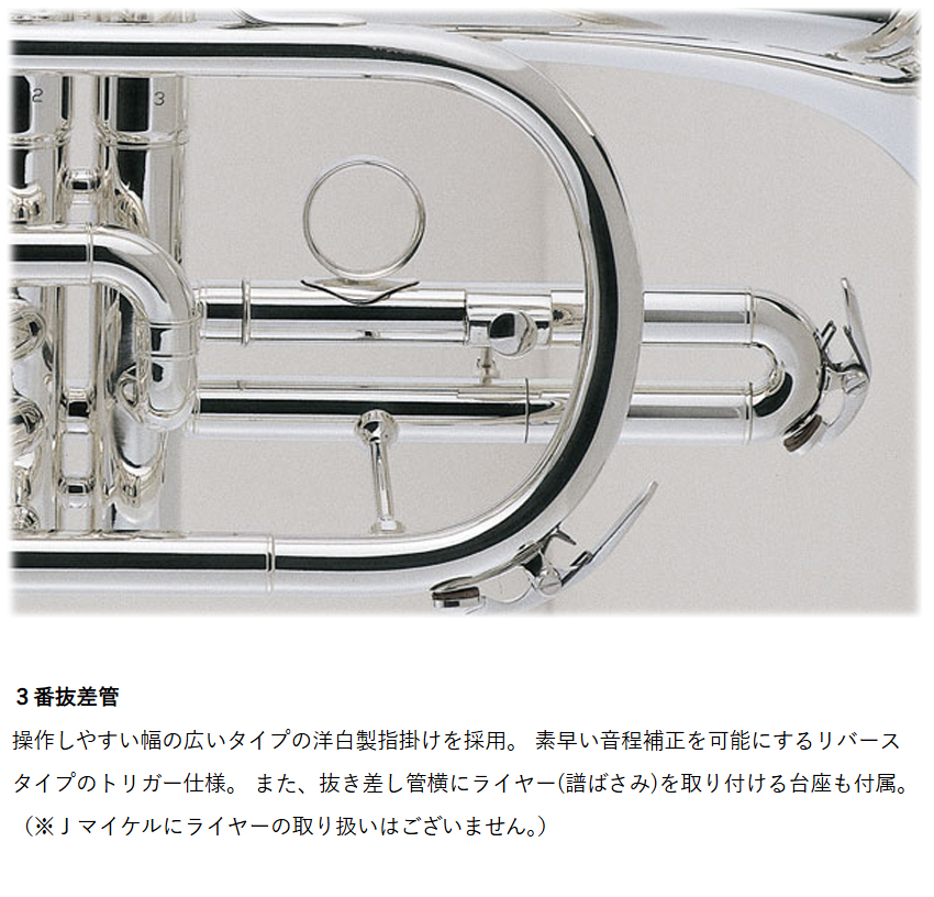 J.Michaelは、マックコーポレーション株式会社の管楽器専門スタッフが製品の開発に携わり、これまで培ってきたノウハウとプロ奏者との対話から生まれる意見をもとに改良を重ねており、低価格ながら高品質の楽器を実現しております。