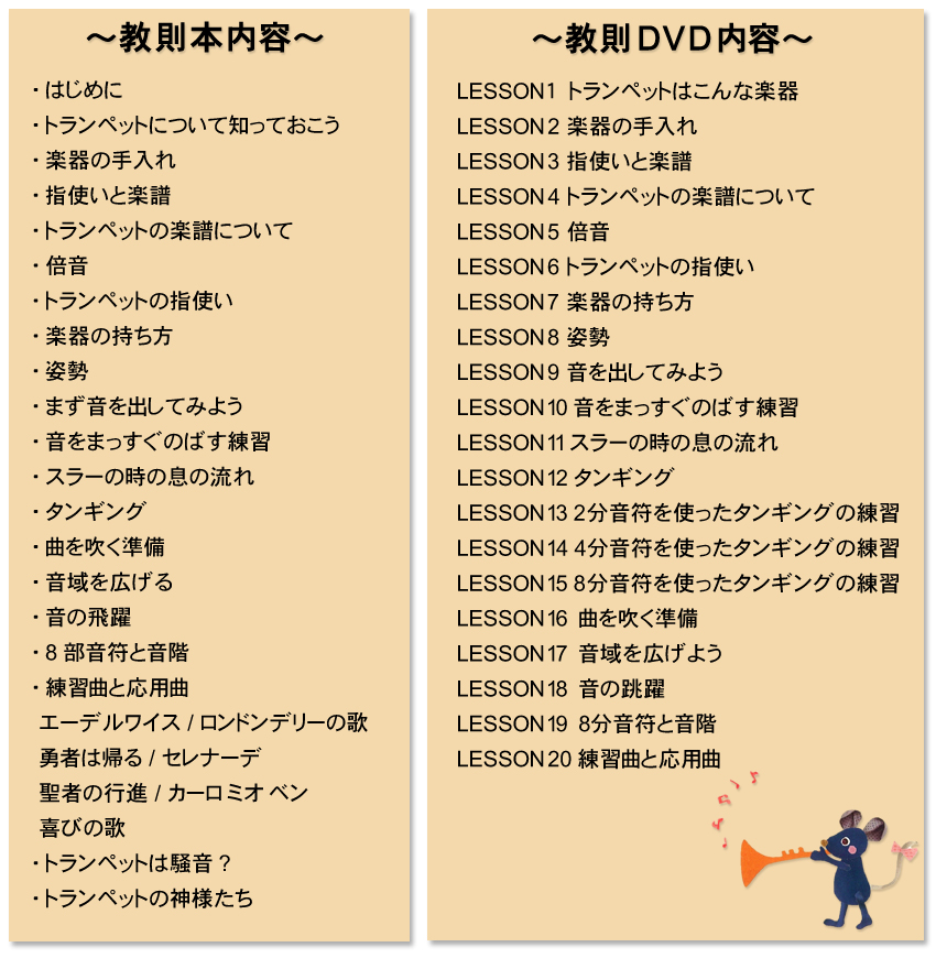 楽器の持ち方から音の出し方や、お手入れの方法も収録されています。