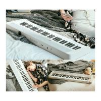 本体の重さ 約4.5kg(乾電池等含まず)と軽量で持ち運びやすいだけでなく、ストラップピンにお好きなストラップをつけて肩にかければ、スタンドや机がなくても本体を支えることができます。ソファやベッドなど場所を選ばずに演奏を楽しめる、生活に馴染みやすいキーボードです。