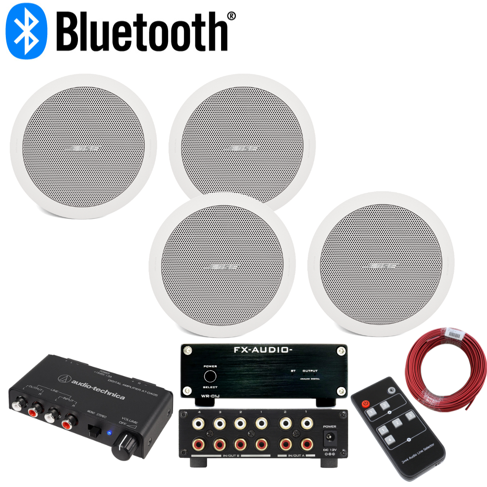 BOSE天井埋め込みスピーカー FS2CW(2本1組)×2(計4本)/audio-technica パワーアンプ/Bluetoothレシーバー/ラインセレクター/50cmRCAケーブル×2.スピーカーケーブル50m