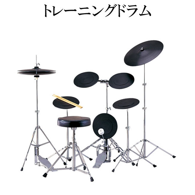 自宅などでの連取に最適なトレーニングドラム(バスドラ、スネア、ハイハット、タムタム、シンバル×1(もしくは2)、ドラム椅子、スティック)のセットになります。