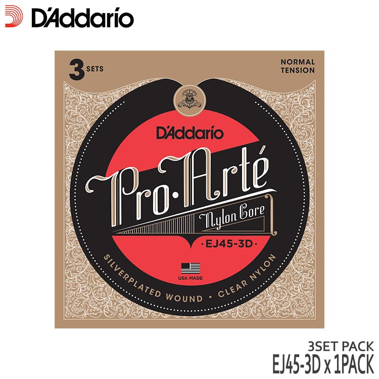 ダダリオのクラシックギター弦「PRO-ARTE NYLON EJ45-3D NORMAL TENSION」1パック(3セット)です。