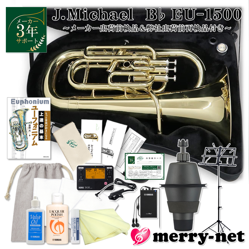 J.Michael ユーフォニアム 太管 EU-1500 クリアラッカー 4本ピストン ヤマハのミュート サイレントブラス 教則本 譜面台 お手入れセット チューナー 初心者 趣味