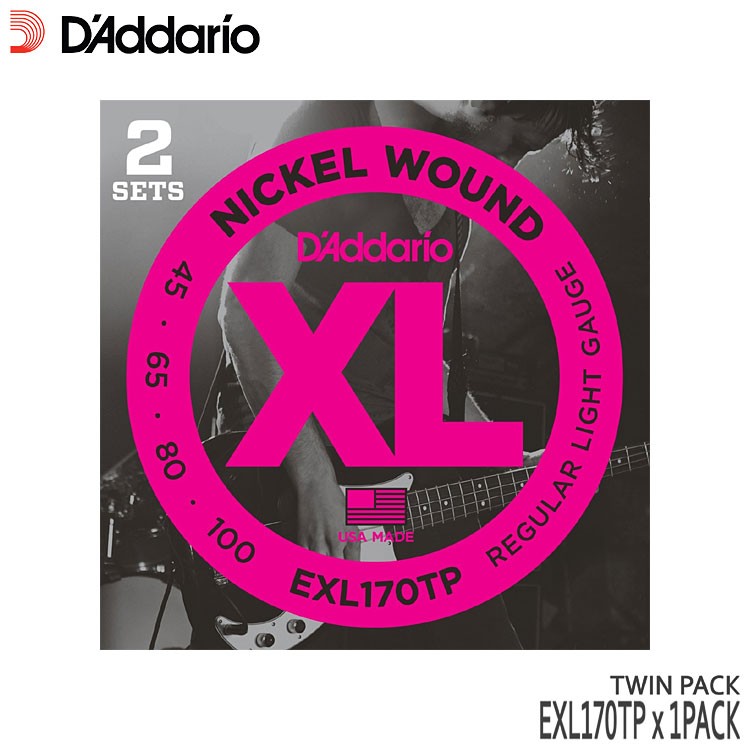 ダダリオのベース弦「XL NICKEL EXL170TP REGULAR LIGHT」1パック(2セット)です。ブライトでかつ正確なイントネーションを生み出し、どんなベースとも相性抜群です。ゲージ(太さ)は.045〜.100の「レギュラーライトゲージ」と呼ばれる太さです。