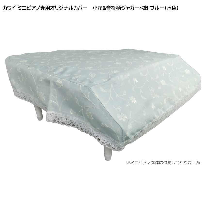 カワイ ミニピアノ専用 オリジナルカバー 小花&音符柄ジャガード織 ブルー 水色 河合楽器