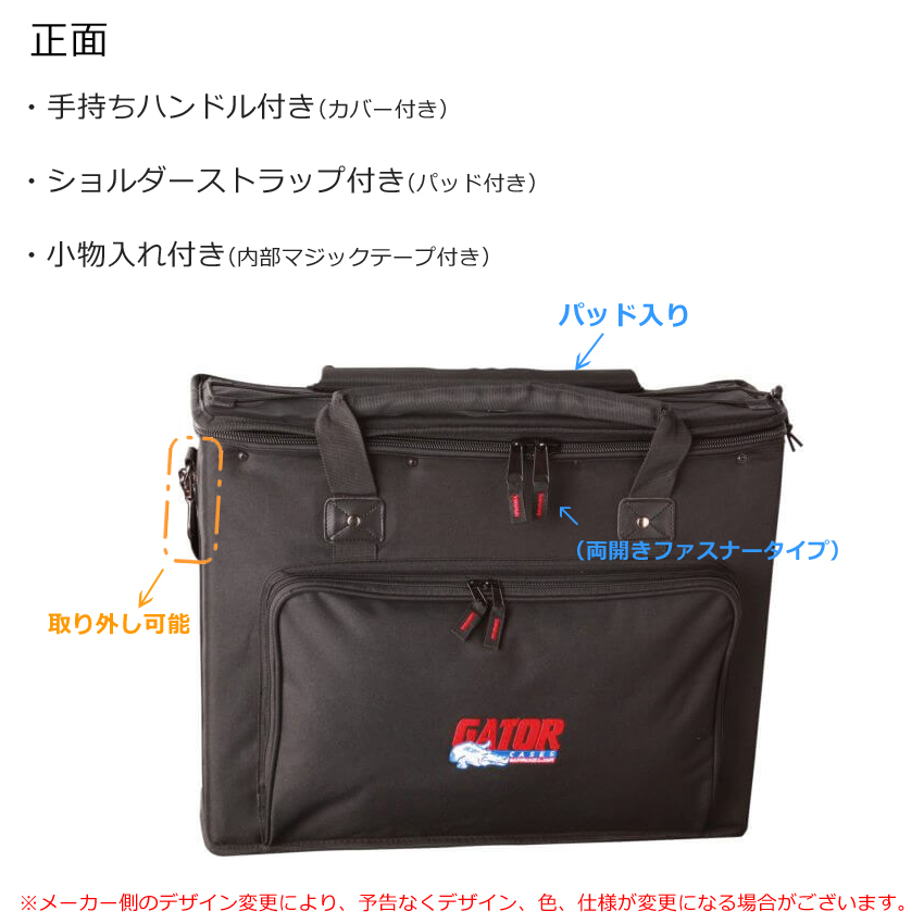 | 業界最高水準で楽器のケースやバッグを生み続けているケースメーカー「GATOR」のオーディオラックケースシリーズです。 ゲーターの特徴である軽量で丈夫なケースは、楽器を始める初心者の方からプロとして活躍する世界各国のミュージシャンまで数多くの人に愛用されています。 当店では他にもゲーター製のPAケースやミキサー専用ケース、マイクケース、スタンド類向けのケースなどの取り扱いがあるので、ご自身にぴったりのセットを揃えることができます。 | ||||||||||||||