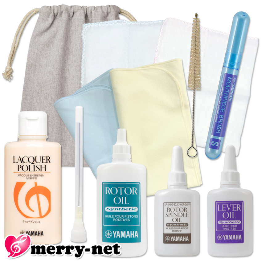ラッカー仕上げのホルン お手入れセット ヤマハのオイル3種類 ノズル グリス マウスピースブラシ付き /必須のメンテナンスセット/ 吹奏楽部 初心者 ブラスバンド