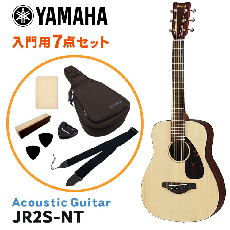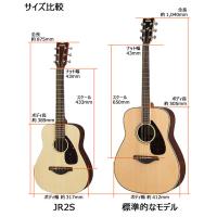 YAMAHAのミニアコースティックギター「JR2S」です。 ヤマハの定番アコースティックギター「FGシリーズ」をモチーフにした、スティール弦のミニフォークギター。一般的なアコースティックギターの全長約1,020mmに比べ、全長約857mmとコンパクトサイズで、小学生位のお子様向けの入門用ギターとしておすすめのモデルです。 ボディ材は、トップ材に輪郭のハッキリしたサウンドが特徴の「スプルース単板」、サイド&バック材にはクセのないサウンドが特徴の「メランティ(マホガニー柄)」を採用。また、レギュラーサイズのアコースティックギターと同様に、表板に僅かなアーチを付けることによって、コンパクトなサイズながら適度なテンション感と広がりのあるサウンドを獲得しています。また、側裏板には艶あり塗装、ヘッドにはローズウッドの化粧貼りを施す等、高級感のある仕上げになっています。 スケール(弦長)は、標準サイズのギター(約650mm)に比べて約110mmほど短い540mmとなっていますので、お子様の練習用のギターとして最適です。また、ナット幅が通常のギターと同じ43mmとなっていますので大人の方はもちろん お子様が成長されても違和感なく持ち替えが可能です。 また、トラベルギターや気軽に弾ける セカンドギターとしてもおすすめです。