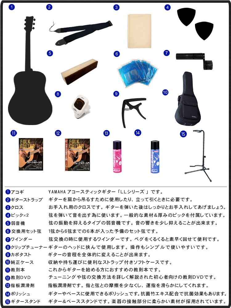 YAMAHA アコースティックギター 豪華15点セット LL6 ARE NT ヤマハ エレアコ 入門用