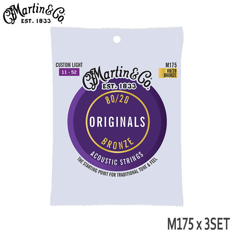 アコースティックギター弦 マーチン M175 3セット 80 20ブロンズ カスタムライト Martin アコギ弦 ブロンズ カスタムライト