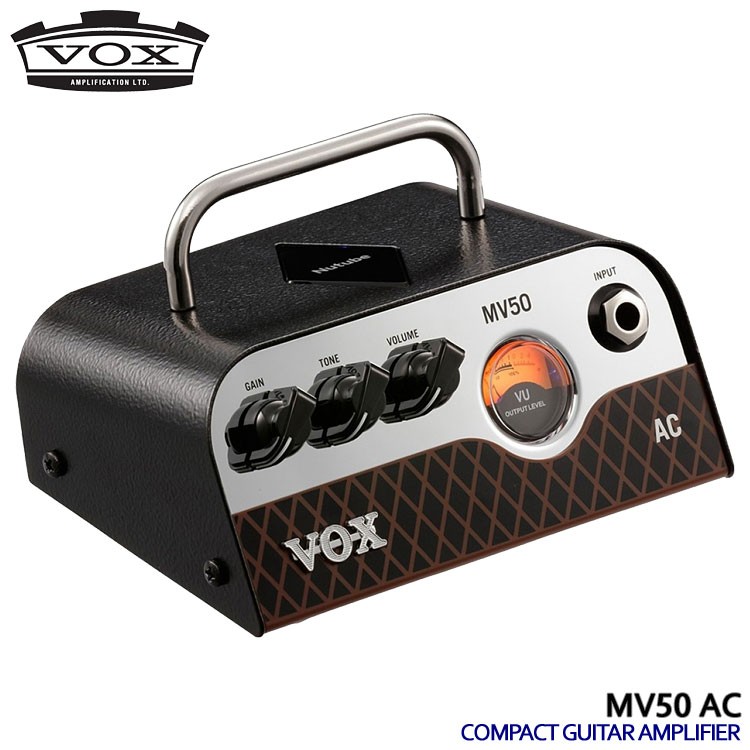 | VOXのコンパクトギターアンプヘッド「MV50」です。 わずか540gの片手でラクラク持ち運べる超コンパクトなヘッド・アンプ。一見、アクセサリーと見間違う程のコンパクトさ、インテリアとしても通用するデザイン性の高いルックスながら、このサイズにして最大50Wの出力を誇るモンスター級のサウンド・パワー。蛍光表示管技術を応用した新真空管「Nutube」をプリ・アンプに搭載し、パーツの細部に至るまで、完全アナログ仕様。真空管ギター・アンプの持つ素晴らしい動特性を再現しています。VOX伝統クランチ・サウンドが特徴の「AC」タイプです。 新真空管「Nutube」をプリ・アンプに搭載 2015年の発表以来、様々なメディアやイベントで取り上げられ、世界中のエンジニアやメーカーから注目を浴びる新真空管Nutube。コルグとノリタケ伊勢電子の共同開発により誕生した革新的とも言えるNutubeをプリ・アンプに搭載。小型化、低電圧、省電力と、まさにNutubeの特性を最大限に活かすことにより、このサイズ感のヘッド・アンプが実現。もちろん、豊かな倍音成分や音圧感といった真空管サウンドの特長は健在です。 - Nutubeとは - コルグとノリタケ伊勢電子の共同開発により誕生した新真空管。従来の真空管と同じく、アノード・グリッド・フィラメントの構造を持ち、完全な3極真空管として動作し、また従来の真空管と同様、真空管特有の豊かな倍音を生み出します。ノリタケ伊勢電子の蛍光表示管の技術を応用することにより、その構造を工夫し、従来の真空管と比べ、大幅な省電力化、小型化、品質向上に成功しました。 徹底的にアナログ仕様にこだわった設計思想 パーツの細部に至るまで、完全アナログ仕様。Nutubeをはじめ、すべての回路を膨大な数のアナログ素子で構築しています。さらに、動作点が常に変化する特別な回路を搭載することにより、真空管ギター・アンプの持つ素晴らしい動特性を再現しています。まさに半世紀以上もの間、ギタリストに支持されてきた本物のアナログ・サウンドがここにあります。 真空管アンプのダイナミズムまでも再現するパワー・アンプ部 低発熱で効率の良いクラスDパワー・アンプを搭載。これによりNutubeを核とした真空管サウンドの特性を損なうことなく増幅します。さらに、真空管パワー・アンプで見られる負荷変動特性までも再現。この回路は、ファットなドライブ感、繊細なピッキング・ニュアンス、素早いレスポンスなど、まさに真空管アンプのダイナミックさの要因ともいえます。この醍醐味が味わえる仕様を施しています。 キャビネット・サイズに応じて最適なサウンドが得られるEQスイッチ搭載 小型サイズのキャビネットの場合、低域が弱く、高域が強調される傾向があり、場合によってはチープな印象を受ける事があります。VOXの新キャビネット「BC108」をはじめ、小型サイズのキャビネットに接続する場合、EQスイッチのDEEPモードを選択すれば、低域を補正しつつ高域を抑えることが可能になります。また、12インチ・スピーカーを4発搭載しているような大型サイズのキャビネットに接続することも考慮し、EQスイッチにはFLATモードも用意。これにより「MV50」のポテンシャルを損なうことなく、スピーカー・キャビネットの特性を最大限に活かしたサウンドを得ることが可能です。 ライン・レコーディングで重宝するキャビネット・シミュレータ ライン/ヘッドフォン・アウトも搭載していますので、直接ミキサーやオーディオ・インターフェイスに接続でき、レコーディング用のアンプとしても活用できます。もちろん、空気感やキャビネットの特性をパーフェクトに再現するキャビネット・シミュレータ回路も搭載。本格的なレコーディング・スタジオで、高級マイクやビンテージ・マイク・プリアンプを通し、熟練のエンジニアよるマイキング技術も含めシミュレーションされていますので、瞬時に本格的なサウンドでレコーディングすることが可能です。