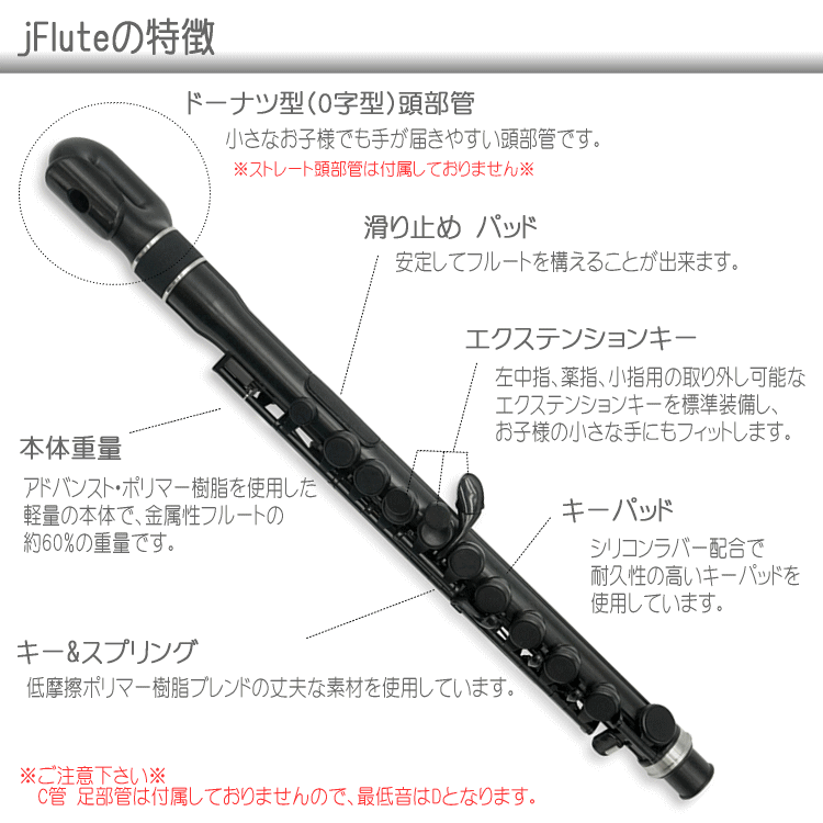 本商品は、「本格的にはじめたい!」という学生さんなどにはオススメ致しかねますが、楽器経験者の方の遊び感覚で、またフルートに興味があるけれどまだまだ体が小さく本物のフルートを持てないというお子様の練習用として、オススメできる面白い楽器です。