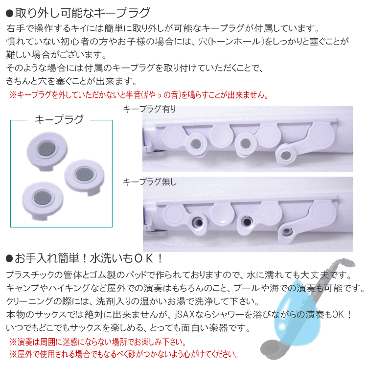 本商品は、「本格的にはじめたい!」という学生さんなどにはオススメ致しかねますが、楽器経験者の方の遊び感覚で、またサックスに興味があるけれどまだまだ体が小さく本物のサックスを持てないというお子様の練習用として、オススメできる面白い楽器です。