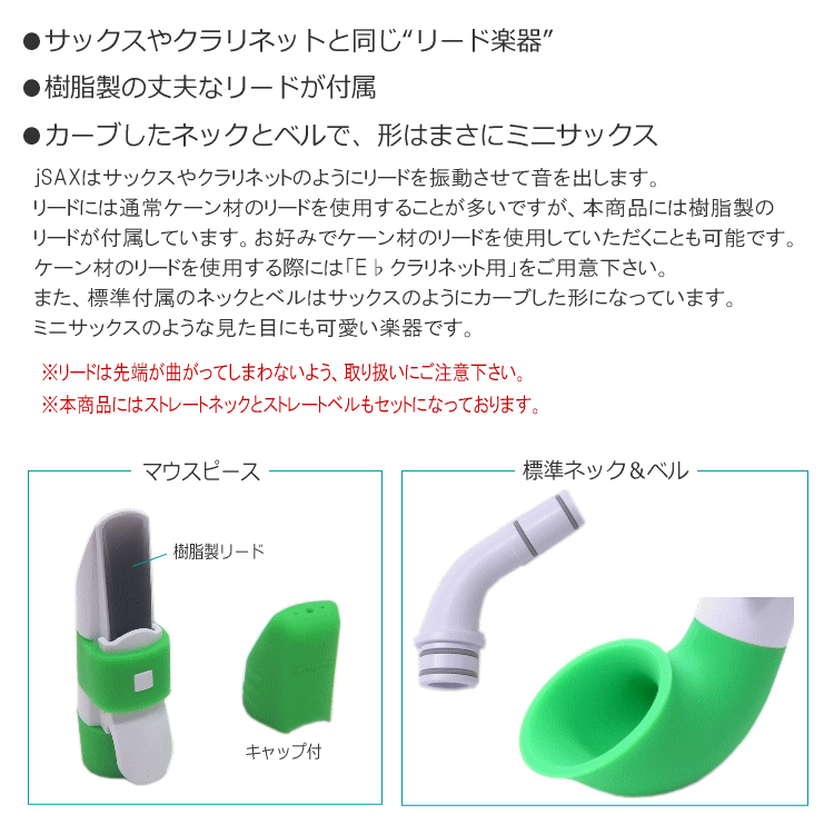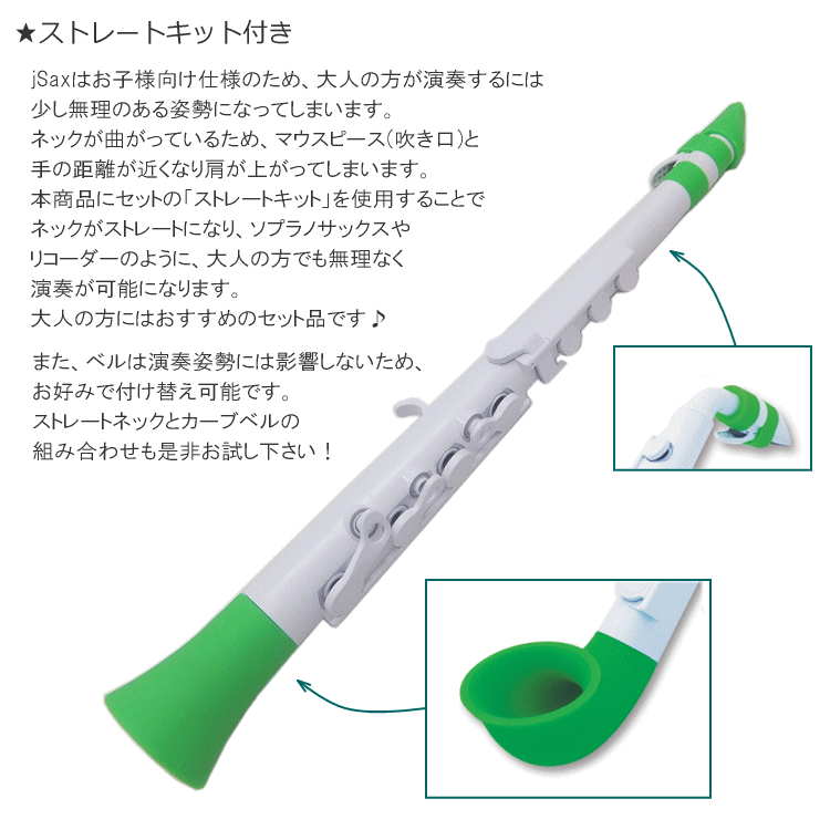 NUVO プラスチック製 サックス jSax ホワイト/グリーン ストレートキット付き (ヌーボ ジェイサックス) N520JWGN/ C管 サックス