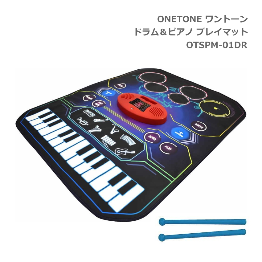 | サウンドプレイマットは、1人または2人でも演奏を楽しむことができるサウンドマットです。 ソロプレイはもちろん、2人同時のセッションプレイでは、ドラムのビートに合わせてピアノでメロディーを演奏するなど、電源を入れてすぐに本格的な演奏が楽しめます。 鍵盤の音色は8種類の楽器の中から選択いただけます。「ピアノ」「サックス」「バイオリン」「アコーディオン」「トランペット」「ハープ」「鉄琴」「ギター」 【本商品の特徴】 ・軽量な薄型マット:プレイマットは薄く丈夫なビニール製の素材で作られています。非常に軽量なため、気軽に持ち運びができ、未使用時はコンパクトに折りたたんで保管いただけます。 ・高感度なタッチセンサー:薄型ながら反応の高いセンサーを内蔵しており、スムーズに演奏いただけます。※構造上、テンポの速い曲や高速で連打した際に音が飛ぶ場合がございます。同じ音が続く場合は鍵盤から指を完全に離してから再度押してください。 ・単三乾電池4個(別売)でのみ動作します。※電池蓋の開閉にプラスドライバーが別途必要となります。 ・入力端子付きスピーカー:市販のミニステレオケーブルと音楽再生プレイヤーを接続すれば、お好きな曲に合わせて演奏をお楽しみいただけます。 ・録音機能、デモ音源内蔵:一定時間の録音、プレイバック機能を搭載。フレーズの練習などに活用いただけます。また、鍵盤側に10曲、ドラム側に4曲のオリジナルデモ音源を内蔵しています。ドラム演奏に便利なスティック付き。 | ||||||||||||||