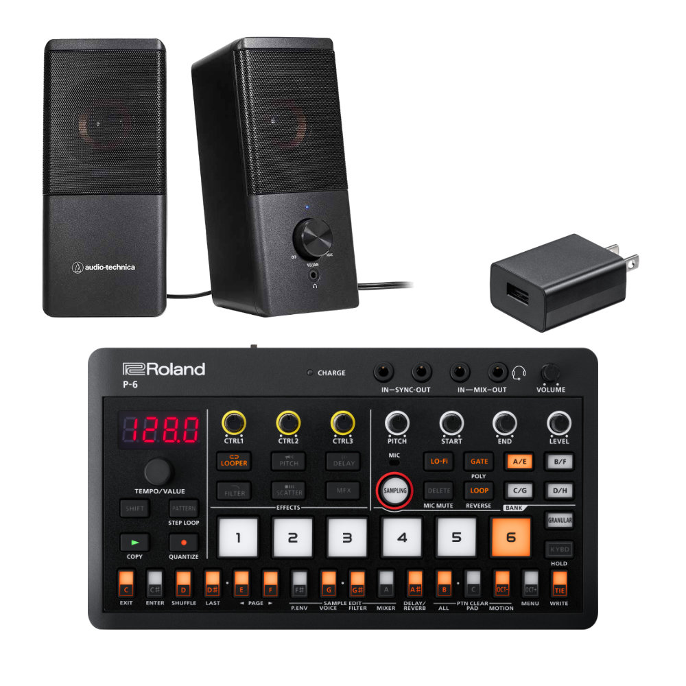 Roland サンプラー P-6/コンパクトアクティブスピーカー/USBアダプター×2
