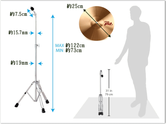 | ■各部サイズ(本商品はシンバル1枚とシンバルスタンド1本の販売となります) |