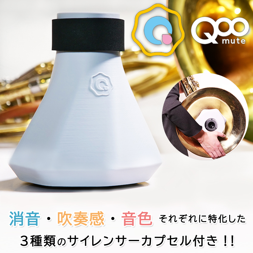 今までのプラクティスミュートにない様々な機能を実現! 金管楽器奏者向けQooMute(クウミュート)。 ■Qooミュート(クウミュート)のコンセプト Q - Quietly(静かに) O - Optimal(最適な) O - Optional(選択できる) 静かな朝も賑やかな夜も、あなたの環境に合った最適な消音を選択いただけます。 ■Qooミュート 3つのポイント ・業界初!サイレンサーカプセル機構搭載。3種類のカプセル付け替えで様々な機能を1つのミュートで。環境に合わせた消音機能で練習ができる。 ・カラーバリエーションが豊富!6種類のカラーバリエーションの中から、好きなカラーのミュートが選べる。 ・超軽量&高強度!3Dプリンターでしか実現できない特殊構造で、軽量かつ高強度を実現。 |