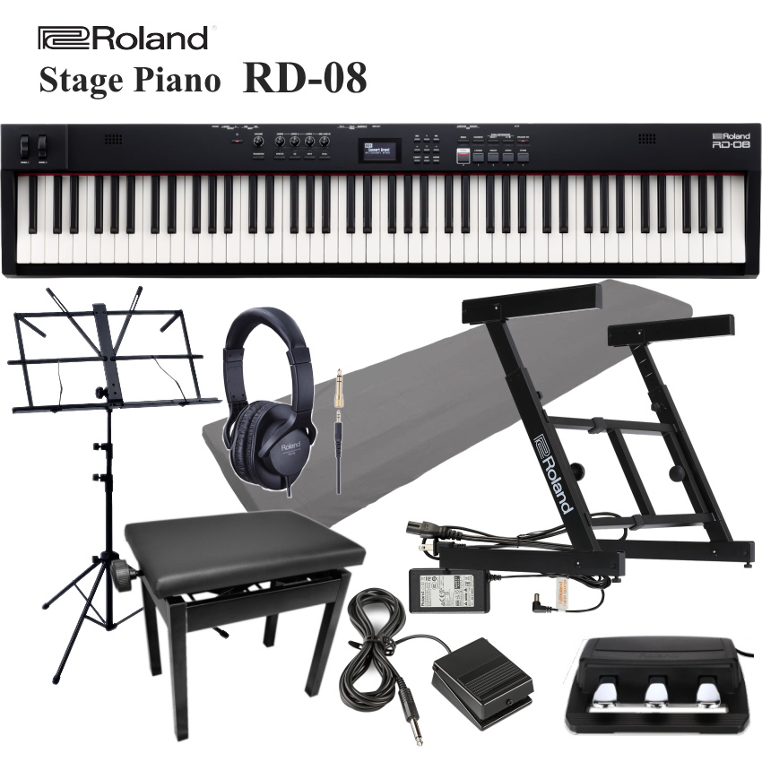 ローランド ステージピアノ RD-08 揺れないZ型スタンドとピアノ椅子7点セット