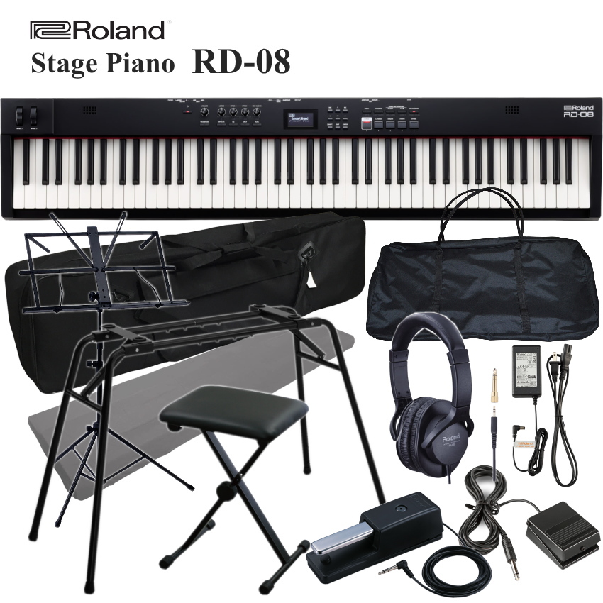 ローランド ステージピアノ RD-08 テーブル形スタンドとケースの9点セット