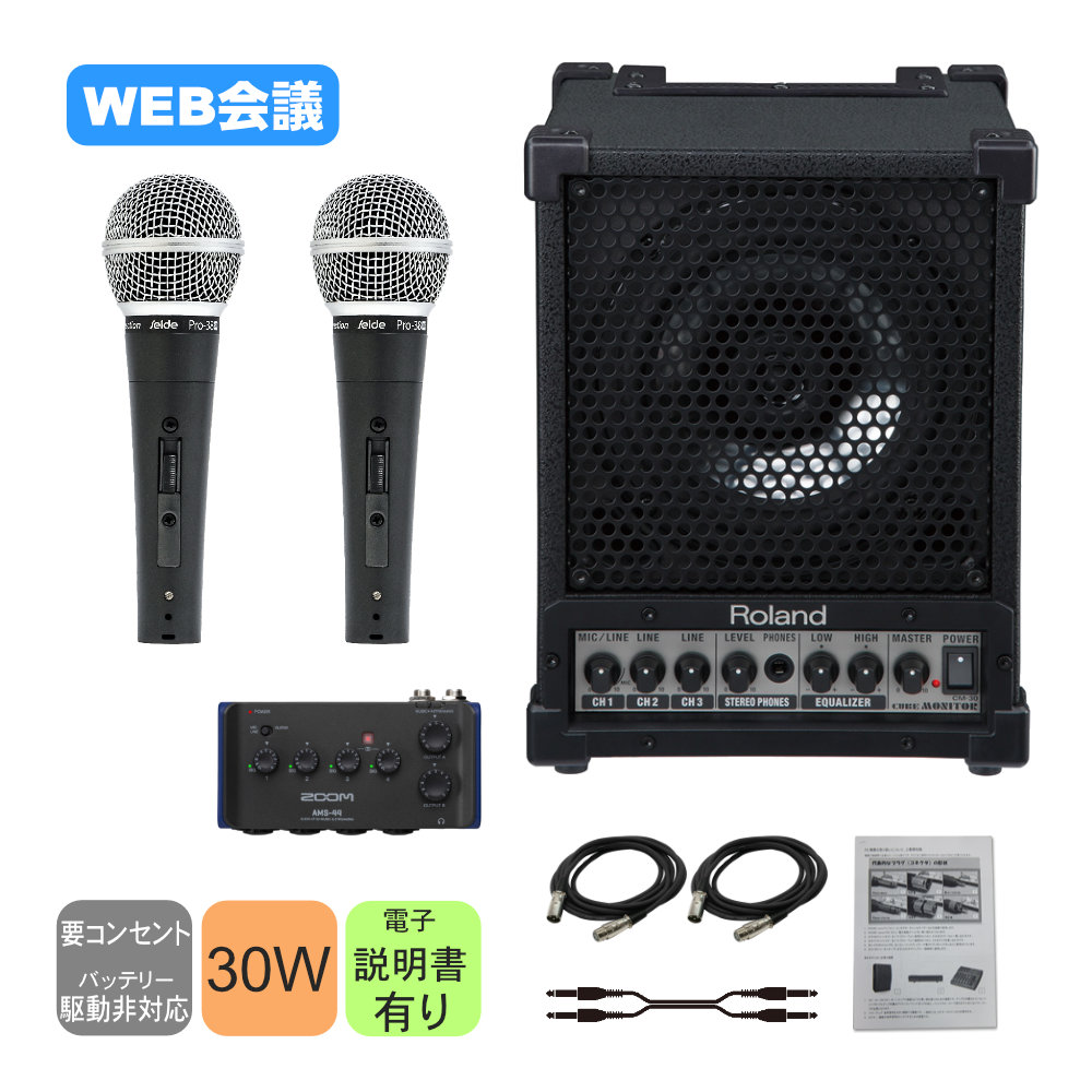 小型多目的モニター・アンプ(30W)×1/USBオーディオインターフェイス/ダイナミックマイク×2/マイクケーブル×2/ラインケーブル