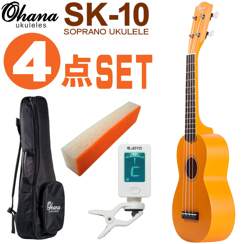 | Ohana ソプラノウクレレ SK-10 ORANGE 初心者4点セット オハナ 初心者向け入門セット | ||||||||||||||||||||||||