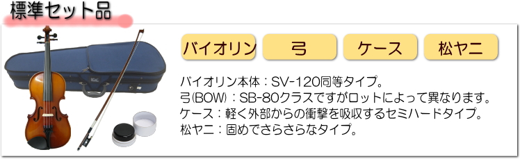 | ※本商品は大人サイズといわれている4/4サイズのバイオリンです。ほかのサイズは発売しておりません。お子様用にはSV180BCなどをご検討ください。 | ||||||||||||
