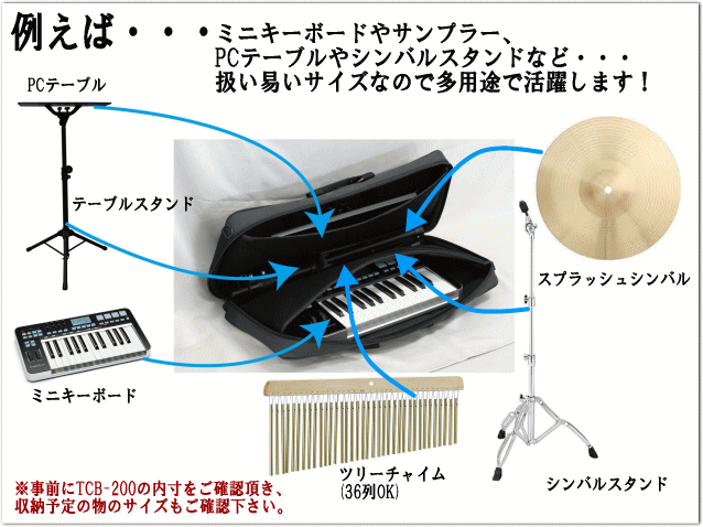 | 国内を代表する楽器メーカー、キクタニミュージックから発売されております、 頑丈かつコストパフォーマンスに優れたツリーチャイムバッグです。 これまで、「TCB-100」の名前で販売されており、当店でも非常に人気の高かった収納ケースですが、 この度後継機種として新たに「TCB-200」となり、発売開始されました。 内寸は65cm×31cm×7cmと、TCB-100と同じで、これまで通りの使いやすさです。 またこの度より背負えるようにリュックタイプにもなりましたので、両手のふさがった状態での持ち運びや、 バイクで移動される際などに非常に役立ちます。 中身は間仕切りが2枚あり(3スペースに分かれているイメージです)、 アイデア次第でミニキーボードやサンプラー、簡易的なレコーダー、シンバルやシンバルスタンドなど ツリーチャイム以外でも様々な楽器が収納できます。 ※収納したい物のサイズと本商品TCB-200の内寸サイズを必ずご確認のうえご購入下さい。 クッション性 内部のクッションですが、ペラペラな感じではなく、ある程度クッション性があります。 手提げ!リュック!肩掛け!用途に合わせて持ち運び方いろいろ! 3Wayタイプにバージョンアップしましたので使いやすさも広がりました。 特にリュックタイプでの使用は非常に重宝します。 ※手作り工程を含みますので、サイズ及び重量に関しましては個体差により、掲載内容と若干異なる場合がございます。 初期不良が生じている場合を除き、その他の理由での交換にはお応え致しかねます。その点、予めご了承下さい。 初期不良の場合の交換期間は、お届けから7日以内となります。 また、商品の仕様は予告無く変更になる場合がございます。色味はモニター環境に依存致します。 予めご了承願います。 |