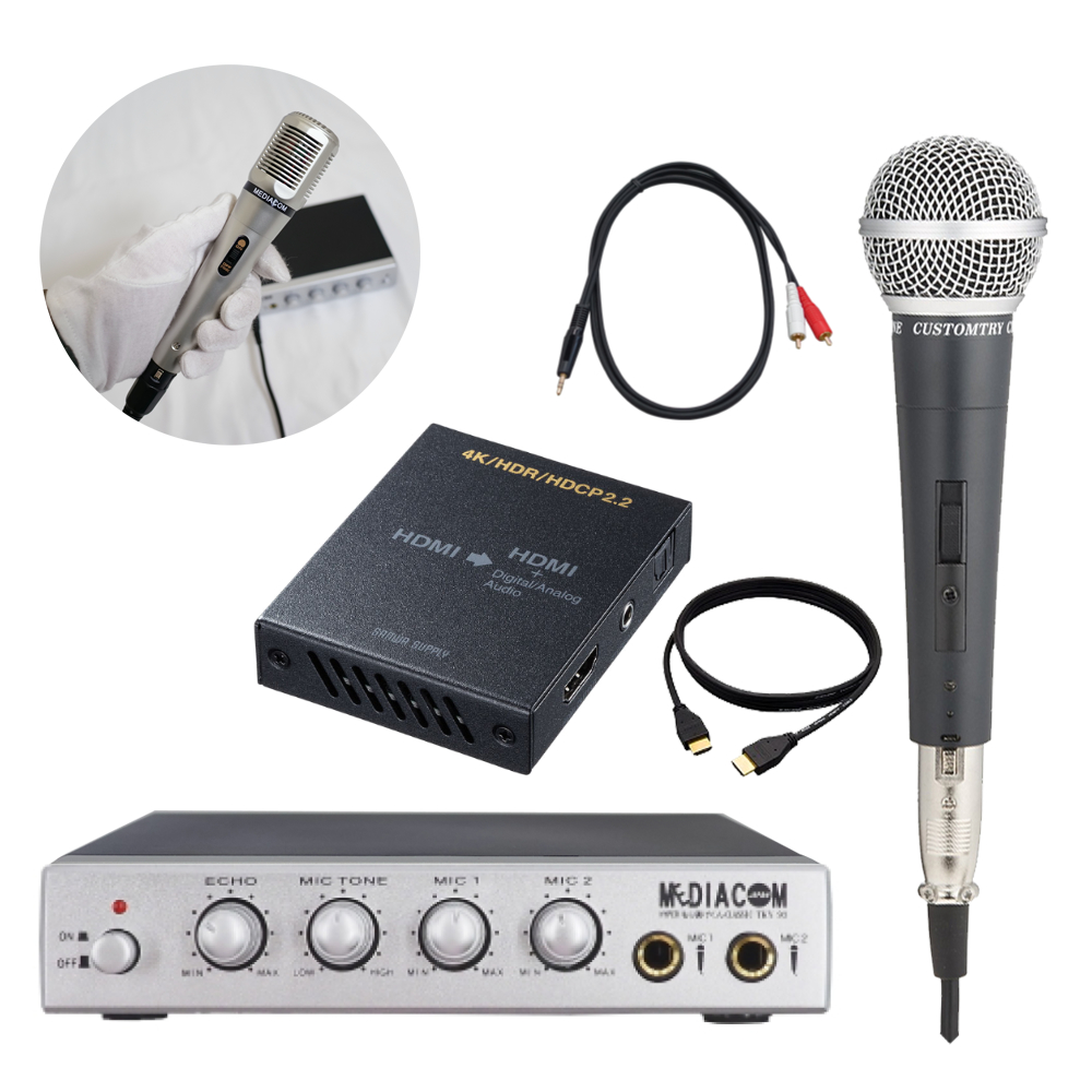 【セット内容】HYPERもりあげくんCLASSIC(有線マイク1本付き)/HDMIオーディオ分離器/接続ケーブル2m(オーディオ分離器→ミキサー接続用)/HDMIケーブル/ダイナミックマイク×1 | ||||||||||||||||||