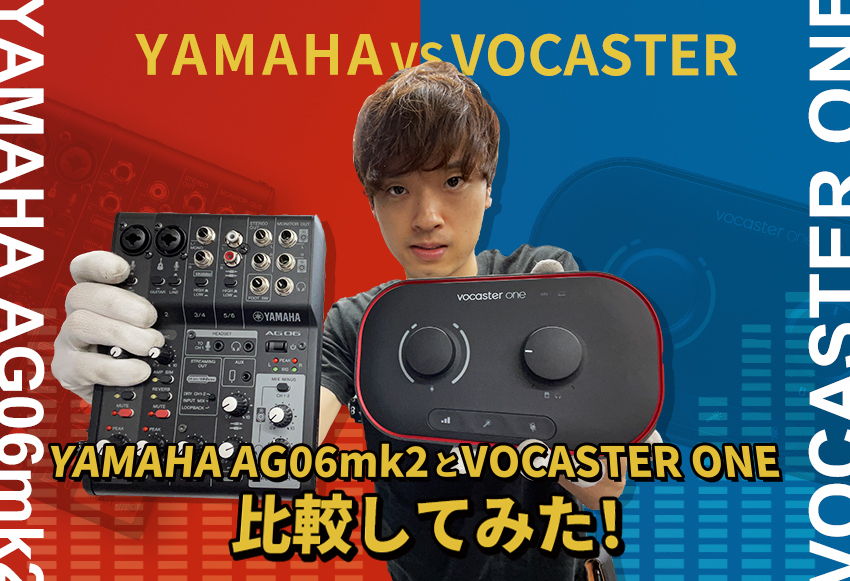スタッフレビュー:YAMAHA AG06mk2との比較当社の展示機を使って比較・試聴してみました。以下、当店スタッフの独自コメントになります。※スタッフレビューは仕様では伝わらない要素を本音で語るコーナーです。※ 1.マイクプリの増幅量Focusrite vocaster oneの方が大きいです。SHURE SM7Bといったゲインを必要とするマイクにはvocaster oneがお勧め。 2.音質音質はあくまで主観となりますが、正直に言うとほぼ同じ。