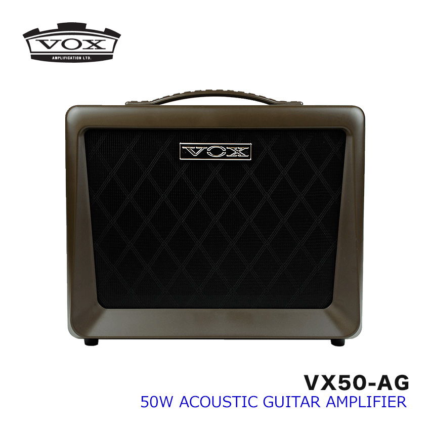 | VOXのアコースティックギターアンプ「VX50 AG」です。 - 本商品の特徴 - Nutube搭載、50W大出力のコンパクトな真空管アコースティック・ギター・アンプ 小型・軽量アンプのVXシリーズに、新真空管Nutubeを搭載した50Wのアコースティック・ギター用モデルが新登場。サウンドを出力します。マイク端子も装備しているため、ライブなどにも手軽に持ち運べる上に、この一台で完結。さらに、ステージ用モニタ??ーとしても活躍します。カラーリングは、オーガニックなアース・カラーでまとめました。 50Wの大出力で画期的な軽量・小型化を実現 50Wの大出力を持ちながら、4.1kgの軽量ボディとコンパクトな設計により、手軽に持ち運ぶことができます。 Nutubeによる暖かみある真空管音 新真空管Nutubeの採用により、小型化・軽量化・省電力と50Wの大出力を実現しました。真空管ならではの豊かな倍音や音圧が楽しめるのはもちろん、コンプレッションの効いたクリアな音色を出力します。 伸びやかな高音表現を実現する8インチ・コアキシャル・スピーカー パワフルな8インチ・スピーカーにツイーターを備えたコアキシャル2wayスピーカーを搭載。ふくよかな低域からクリアな高域まで、音量感を抑えつつも素直なサウンドを出力。大きな特徴です。アコースティック・ギター特有の繊細な表現にも、優れた対応で応えます。 余裕ある出力で豊かな低音再生を実現するバスレフ構造 アコースティック・ギター専用に細部まで調整し、最適化された独自のバスレフ機構を採用。デザインによって理想的なキャビネットの鳴りを実現しています。さらに、バッフルには木材を使用することで、ギター・アンプとしての響きの良さも追求。フィニッシュも特徴です。 繊細なサウンド・メイクを可能にする独立したEQ、高品位なエフェクト INSTRUMENTチャンネルにはBASS/MIDDLE/TREBLEの3バンドEQを装備。アコースティック・ギターならではの繊細な音色からパワフルなストローク・サウンドまで、堅実な音作りが可能となっています。てBASS/TREBLEの2バンドEQを装備。さらに、エフェクトも各チャンネルに独立して装備し、INSTRUMENTチャンネルには高品位なコーラス/リバーブ/コーラス+リバーブ、MICチャンネルにはリバーブを装備。たサウンド・メイクが、この一台で手軽に完結します。サウンドを合わせます。 INSTRUMENT、MICの2チャンネル仕様豊富なデジタル端子 インプットは、INSTRUMENTに加え、ファンタム電源付きのMIC装備も。それぞれ独立したVOLUMEコントロールも搭載しています。また、INSTRUMENTインプットには、ハウリングを押し込むPHASEスイッチも装備。を接続してセッションが楽しめるAUXIN端子や、PA機器などへの接続に使えるLINE OUT端子、自宅練習に最適なオーディオ端子も装備しています。 | ||||||||||||||||||||||||||||||