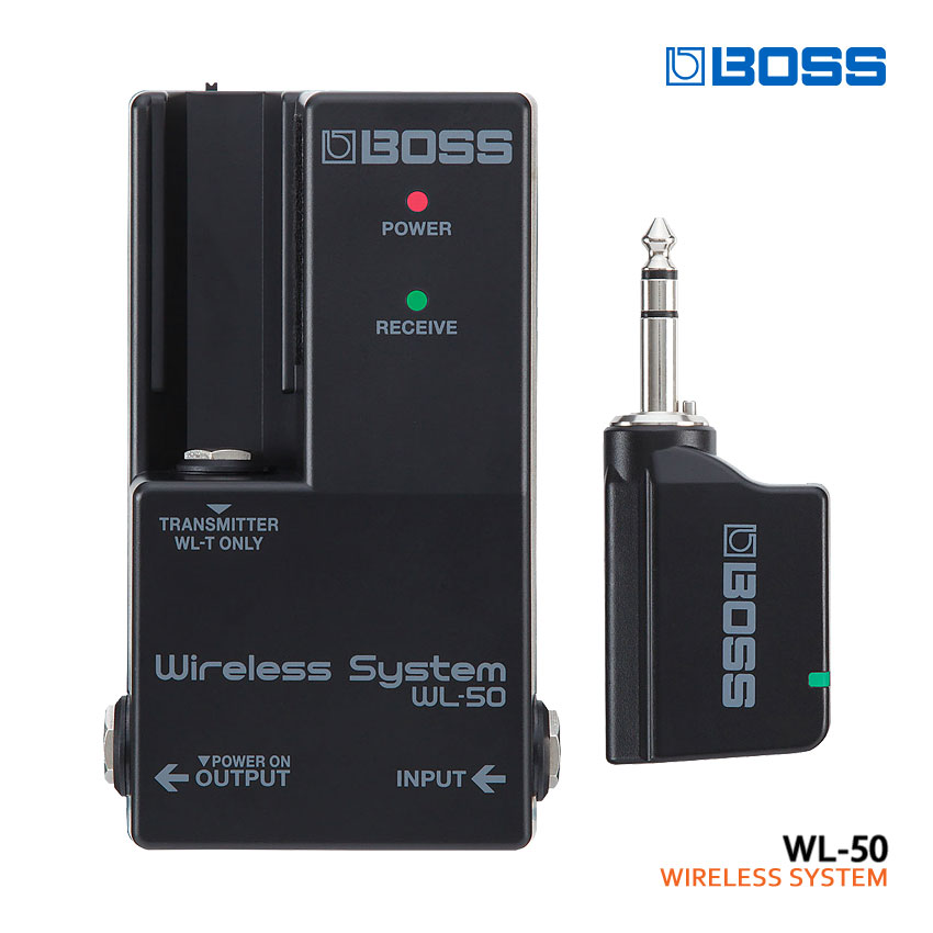 | BOSSのワイヤレスシステム「WL-50」です。 WL-50は、驚くほど手軽にペダルボードへの組み込みができ、自由に楽器演奏を楽しめるワイヤレス・システム。BOSS独自のワイヤレス・テクノロジーにより、音の遅れや音質劣化の心配なく、超高品質で安定した信号伝送を実現します。レシーバーはペダルボードにセッティングしやすいコンパクト・ペダル・サイズで、充電用のドッキング・ポートへトランスミッターをスマートに収納できます。さらに、ボード内の他のペダルに電源を供給できるDCアウト端子を搭載しています。 BOSS独自開発の超高速ワイヤレス・テクノロジー WL-50は、BOSSの完全ワイヤレス・ギター・アンプKATANA-AIRで開発された、独自の高性能ワイヤレス・テクノロジーを搭載しており、ダイナミック・レンジの広い高音質を実現しています。2.4GHz帯で動作し、最適なチャンネルを自動設定。音の途切れが無い安定した通信を行います。また、2.3msという超低レイテンシーの通信により、全く違和感の無い弾き心地が得られます。同じ場所で最大14台のBOSSワイヤレス・システムを同時に使用できるため、ワイヤレスを導入した複数のミュージシャンが同時に演奏する場合でも安心です。 ※使用環境により、同時に使用できるワイヤレス・システムの台数は少なくなります。 ペダルボードに最適なデザイン BOSSコンパクト・ペダルとほぼ同じサイズで、電源に関しても他のペダルと同じように駆動できるため、ペダルを1台追加する感覚で手軽にペダルボードへ組み込むことができます。WL-50のレシーバーをエフェクト・チェーンの最前段にセットし、アウトプットを最初のペダルのインプットへ接続するだけで、簡単にワイヤレスを組み込んだペダルボード・システムが完成します。レシーバーには標準サイズのインプット・ジャックも装備されているので、急にケーブル接続が必要になった場合も即座に対応が可能です。 スマート設計のドッキング・ポート トランスミッターの充電とワイヤレスの自動接続設定が可能なドッキング・ポートを搭載しています。トランスミッターがドッキングされても、全体の高さはBOSSコンパクト・ペダルとほぼ同じのまま変わらないようスマートにデザインされています。 ケーブルと変わらないシンプルさ ペダルボードにセットしてトランスミッターを充電すれば、文字通りギター・ケーブルと同じぐらいシンプルで簡単に使えます。トランスミッターをレシーバーに約10秒間ドッキングして、あとはギター/ベースに接続するだけで最適なワイヤレス接続が自動的に設定されるので、一般的なワイヤレス・システムのような複雑な操作は一切不要です。 切り替え可能なケーブル・トーン・シミュレーション 最も一般的なパッシブ・タイプのピックアップ(電池が不要なピックアップ)を搭載したギターやベースを演奏する際には、ギター・ケーブルの長さにより音質に微妙な変化が現れます。WL-50には、その自然な音質変化を再現するケーブル・トーン・シミュレーションが2種類搭載されています。また、プリアンプ内蔵のエレクトリック・アコースティック・ギターやアクティブ・ピックアップ搭載のエレクトリック・ギターを使用する際は、この効果をOFFにすることも可能です。 あらゆる環境に対応できる2電源方式 ストリート・ライブ等の電源確保が難しい環境では、ペダルを電池駆動させるのが一般的ですが、WL-50のレシーバーも同様に電池駆動が可能です。電池駆動の間は、レシーバーからのトランスミッター充電はできませんが、多くのスマートフォンやタブレットで使用されているものと同じタイプのUSBアダプター(5V/500 mA以上)を使用して直接充電することが可能です。 | ||||||||||||||||||||||||||||||||