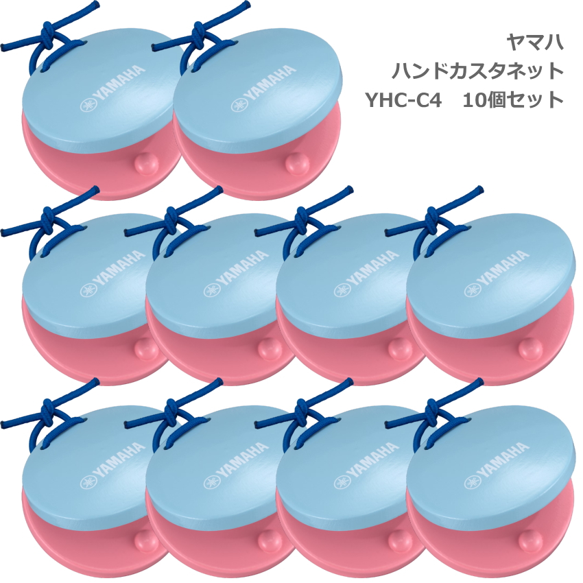 10個セット ヤマハ ハンド カスタネット ピンク/ブルー カラー塗装 YHC-C4 替えゴム お名前シール付き YAMAHA