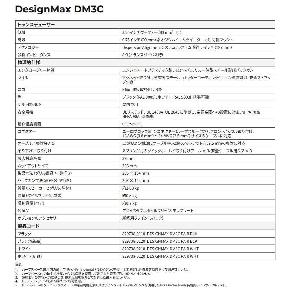 【スピーカー本体の特長】 BOSEの上質なスピーカーラインアップ「DesignMax」シリーズの中で下から2番目にコンパクトなモデル。BOSE FS2Cと比べて低音と高音両方の再生帯域が広くなっております。
