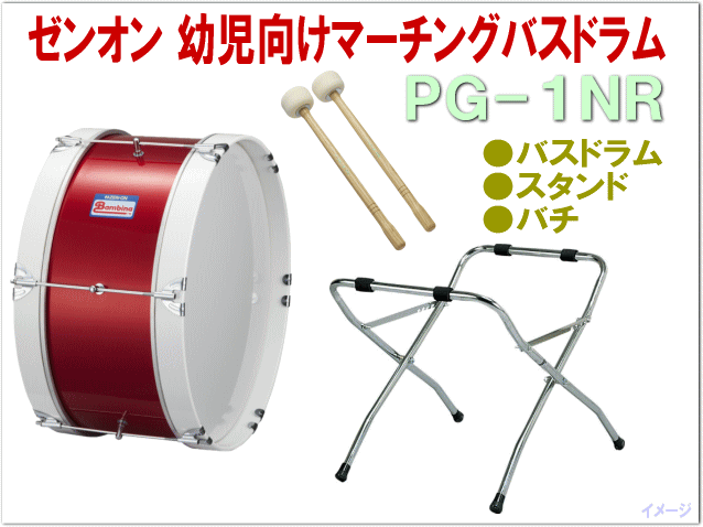 ゼンオン バンビーナ PG-1NR マーチングバスドラム 幼児向け 赤色 マーチングドラム バチ&スタンド付き