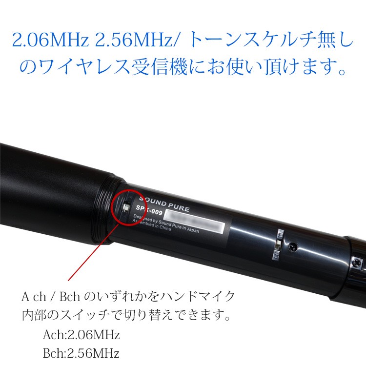 | ※本製品のみでは音声は出力されません。赤外線受信機やスピーカーなどの音響設備が整っているカラオケ店へ持ち込みし使用することを想定したマイク・マイクセットです。赤外線マイクは有線での接続はできません。 周波数帯は2.06MHzと2.56MHzとなります。トーンスケルチはありません。 audio-technica(オーディオテクニカ)の赤外線ワイヤレスシステムと運用チャンネルが一致する機種があるため、周波数が一致するとオーディオテクニカの受信機で電波を受信します。既存のaudio-technica ハンドマイクと同時に使用される際にはご注意下さい。 | ||||||||||||||||||||