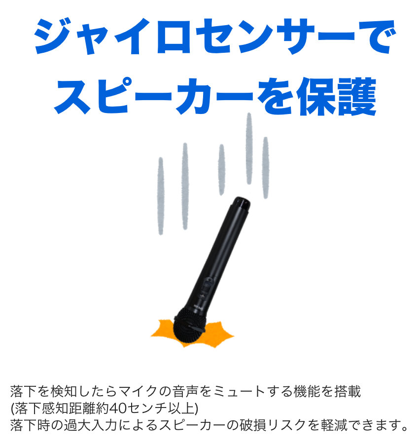 【特長】 ・マイク本体にジャイロセンサーを搭載(特許出願中)落下を検知するとマイクをミュートしスピーカー等の周辺機器を保護します。 ※同じSOUNDPUREのワイヤレスマイクでも800MHzのB帯ワイヤレスマイクとは互換性がありません。 | ||||||||||||||||||||