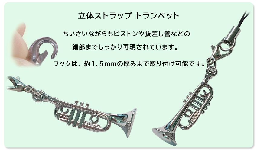 立体ストラップは、トランペット好きな方への贈り物として人気の商品です。