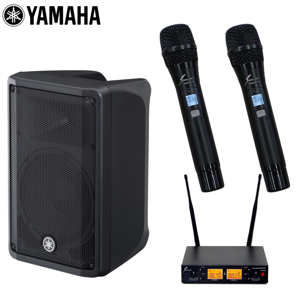 YAMAHA パワードミキサー DBR10/SOUNDPURE ワイヤレスマイク2本セット SPH80112-VDUAL(2ch受信機×1、ワイヤレスマイク×2)、ワイヤレス受信機→スピーカー接続用ケーブル