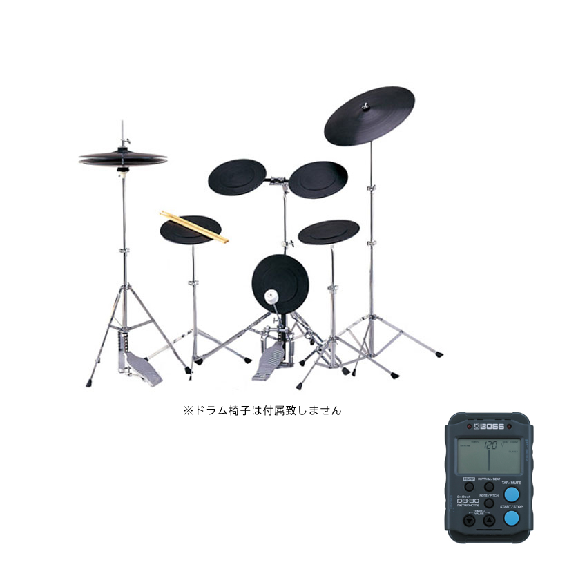 基本パターン&セットコーディネーション練習をして頂く為に「ハイハット、バスドラム、スネア、ライド用シンバル+タムタム+スティック」をセットにしたセットとなります。